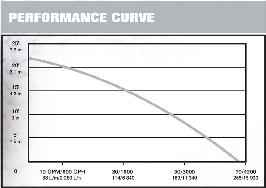 MAXIMUM HEAD: 22' (6.7m)