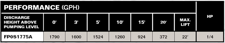 FLOW at 10' LIFT: 1260 GPH